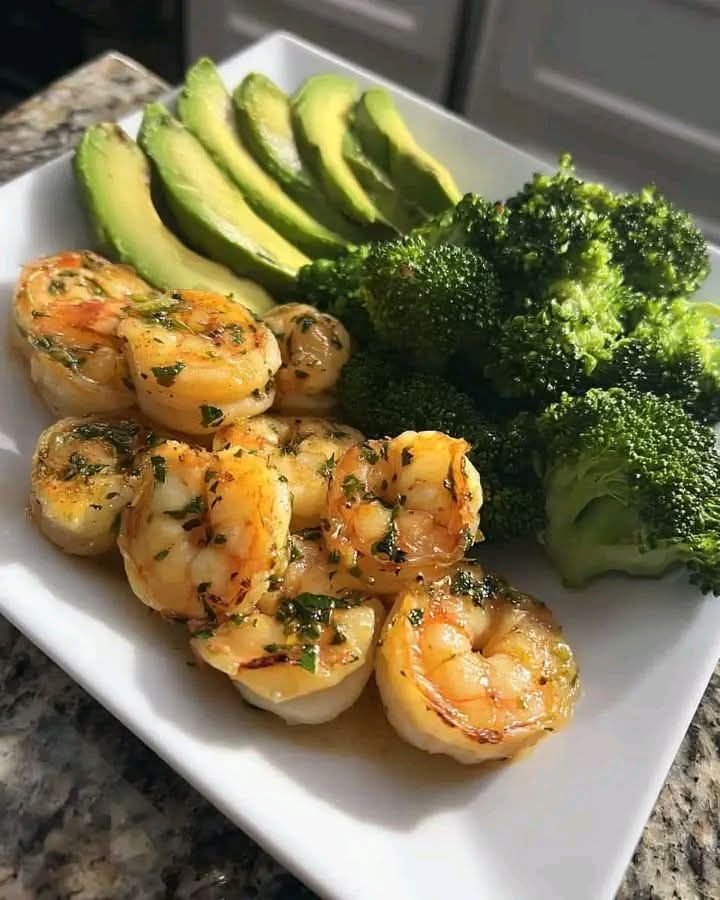 This dish is a fresh, healthy plate featuring garlicky sautéed shrimp, tender broccoli, and creamy avocado. It’s light but satisfying and packed with flavor from ingredients like Shrimp, Broccoli, and Avocado.
