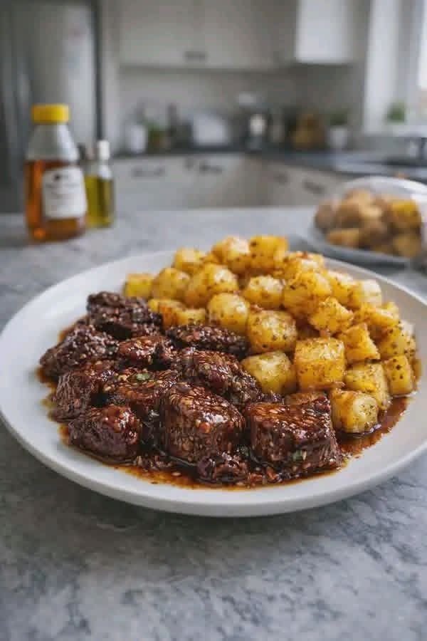 Here’s a simple and delicious way to make Honey Beef & Roasted Potatoes: